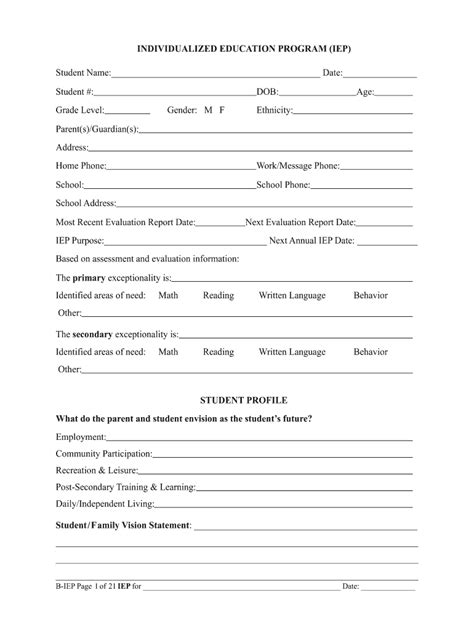 Iep Blank Template 1 Individualized Education Program Special Education